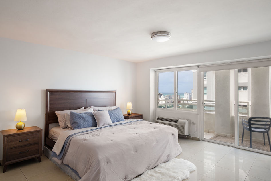 Conveniently located at the heart of Santurce’s Art District, Metro Plaza Towers lets you enjoy the vibrant downtown lifestyle while also making you feel the island vibes with beautiful views towards the Condado Lagoon and the Atlantic Ocean. This modern and stylish apartment features an open floor plan with 1,450 SF of livable space. It is fully furnished and equipped, with 2 bedrooms, 2 bathrooms, and 2 electric vehicle ready covered parking spaces. The building offers full amenities including: 24-hour concierge and security, gym, pool, full power generator, water cistern and a clubhouse. Access to public parking for guests, two restaurants and a hair salon.